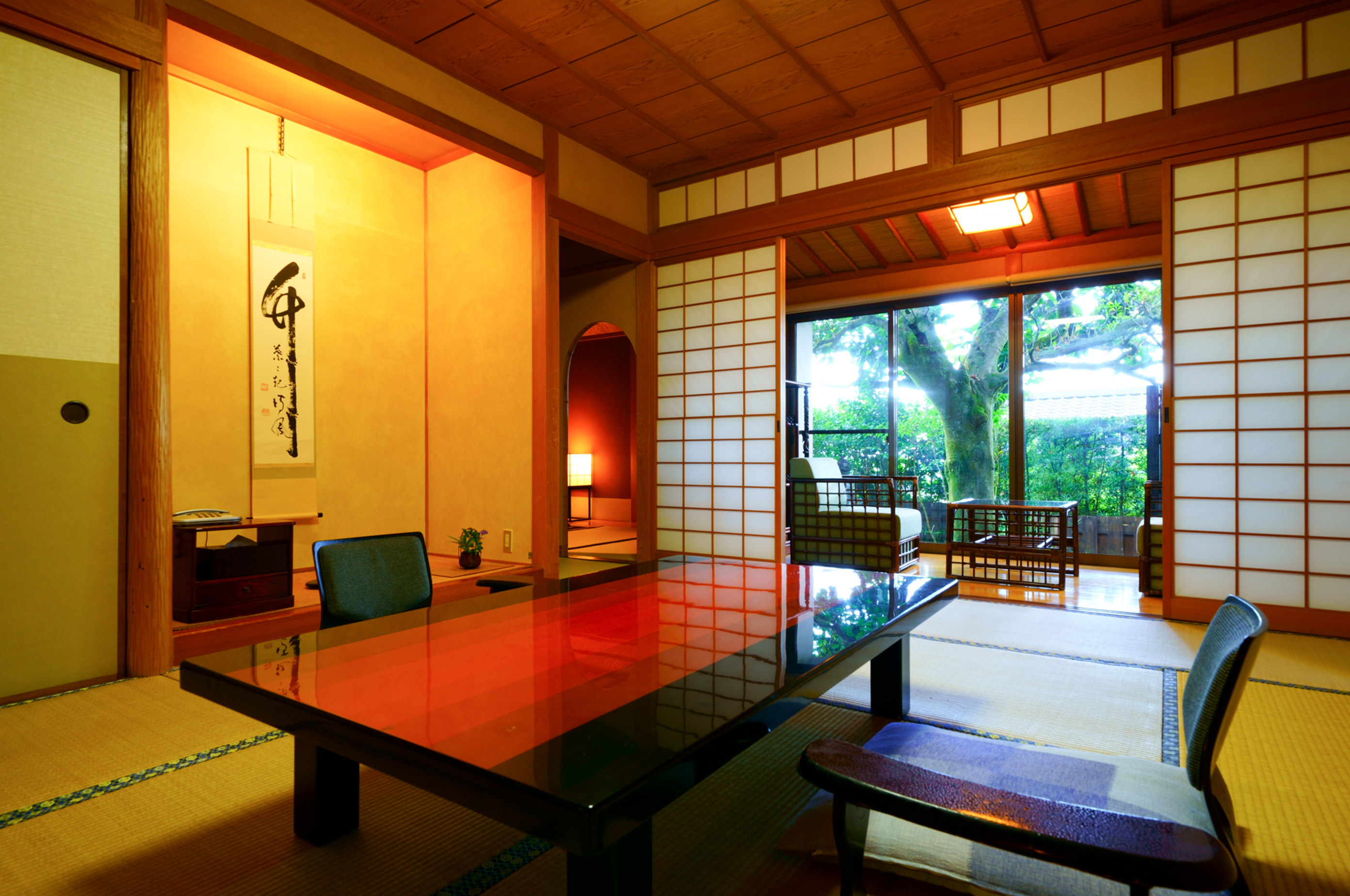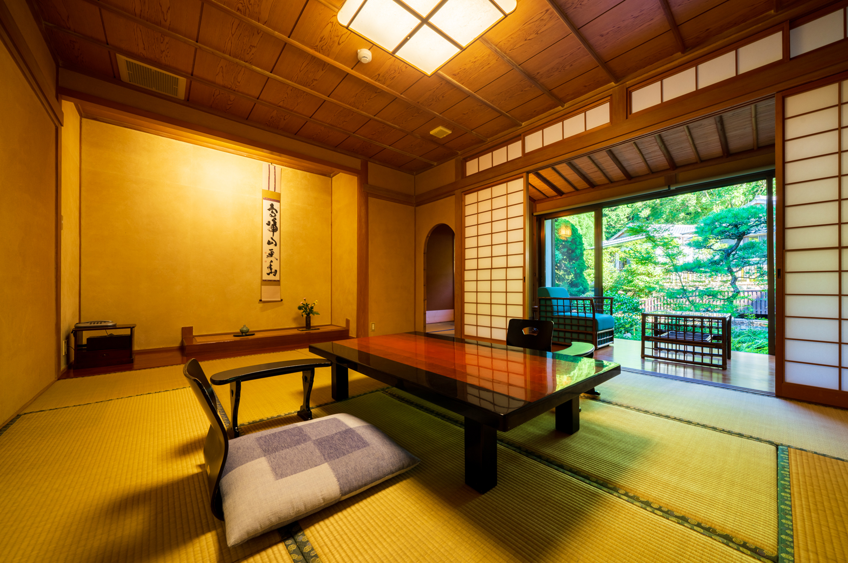 自然の懐に抱かれた純和風の離れの客室にて